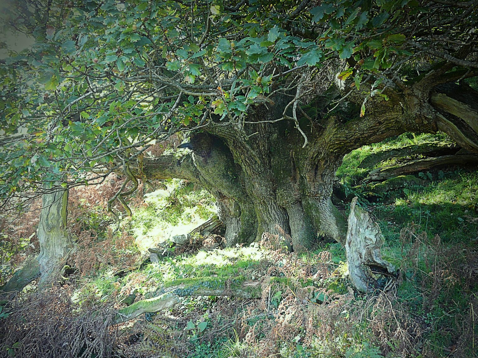 Oaks have had a strong cultural significance throughout history. Some trees are nationally recognised, such as the Queen Elizabeth Oak in Cowdray Park, West Sussex. This sessile oak has a girth of 41-42ft and is roughly 800-1000 years old. One of the largest and oldest oaks on Exmoor is ‘The General’, hidden away in a gully on the side of Cloutsham Ball, which is at least 500 years old (featured in the image above).
